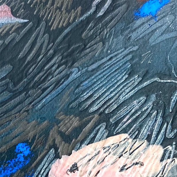 House paint, acrylic, pencil and soft pastel on paper, 5″ x 6″, 2020.