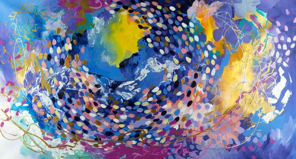 • 2017 • 20×40″ • Mixed media on canvas fabric • Varnished with a satin finish • For shipping, this artwork is rolled in a tube and will need to be framed at your end