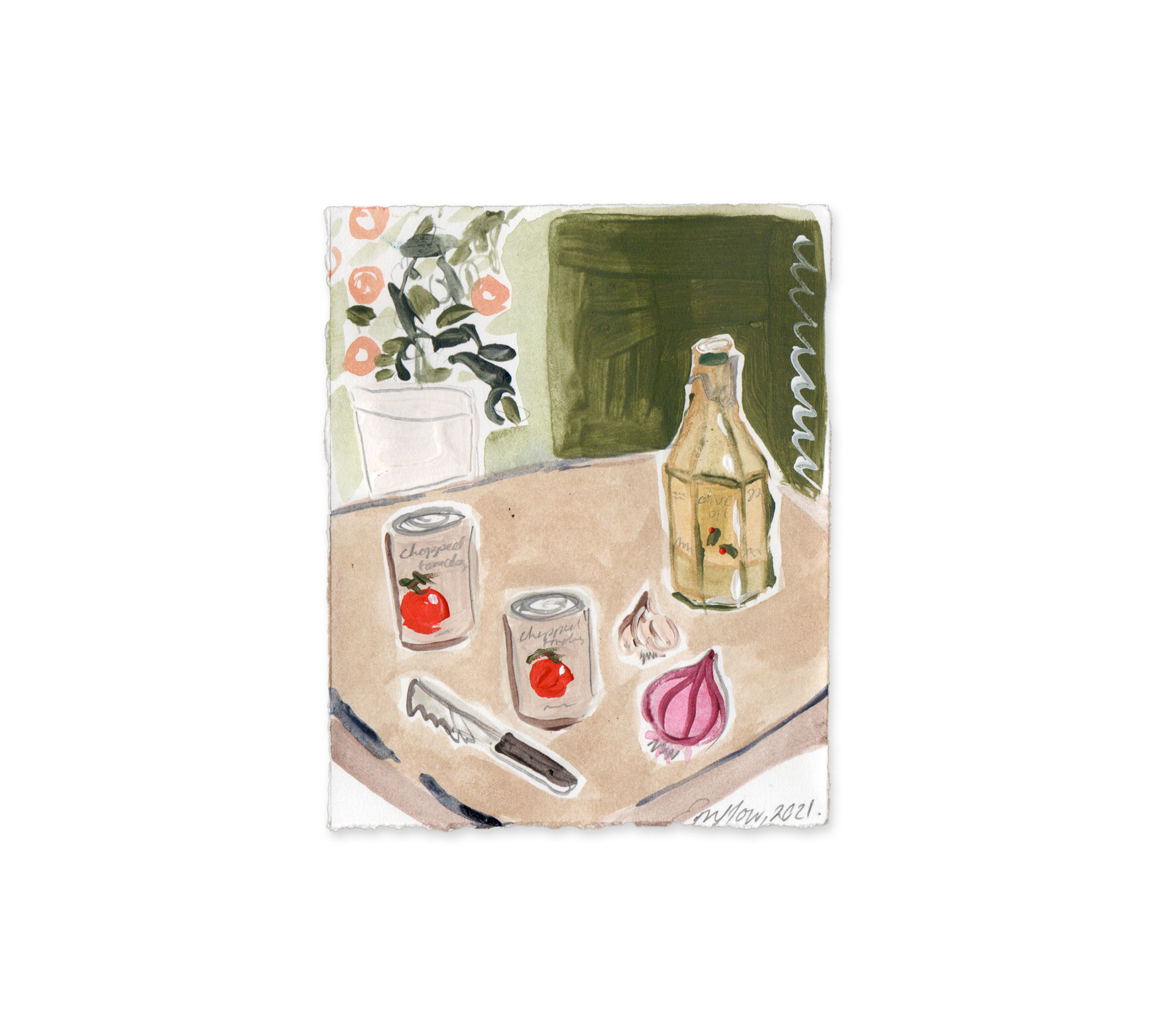 Acrylic and pencil on paper, 4″ x 5″, 2021.