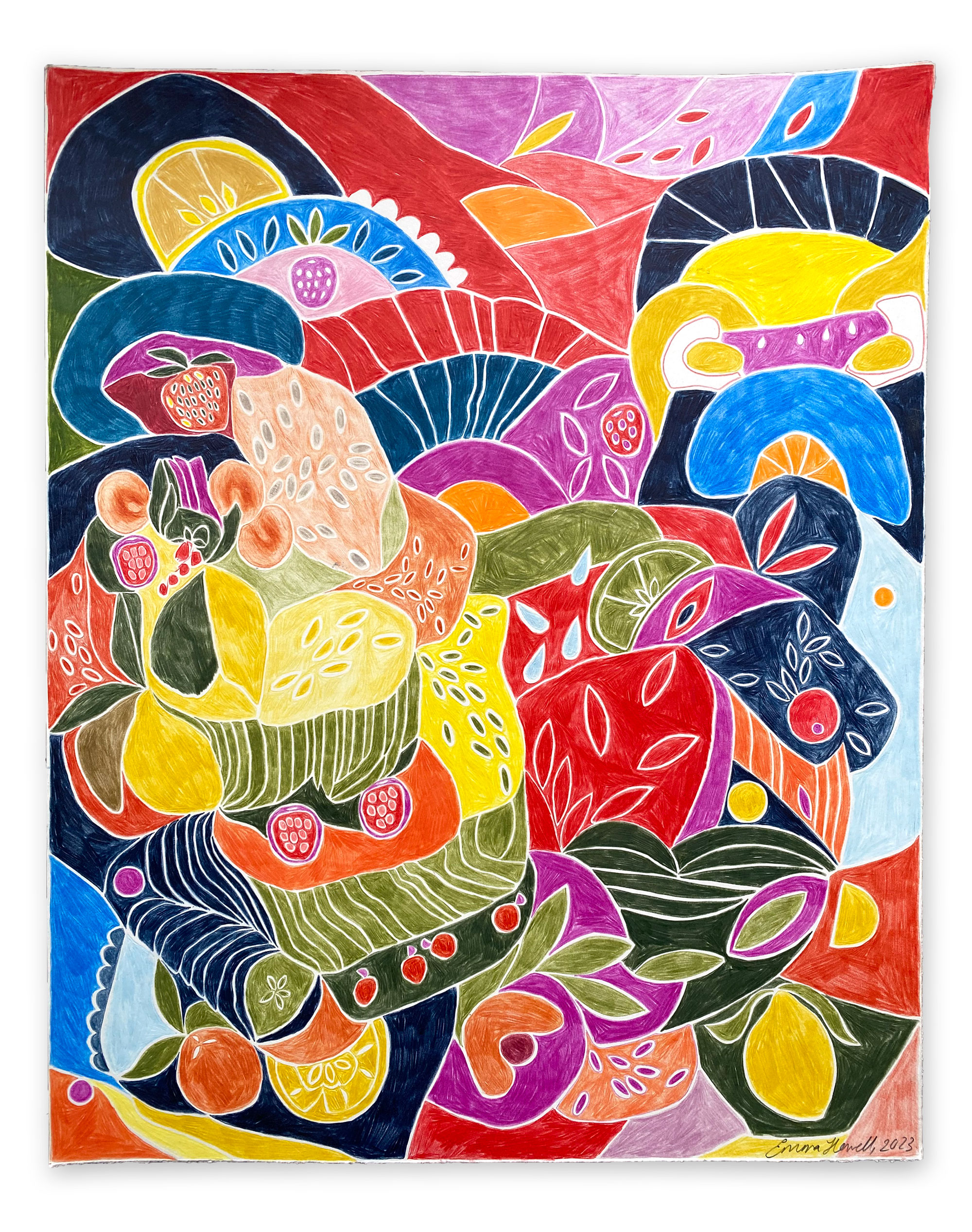 Coloured pencil on paper, 15″ x 19″, 2023.