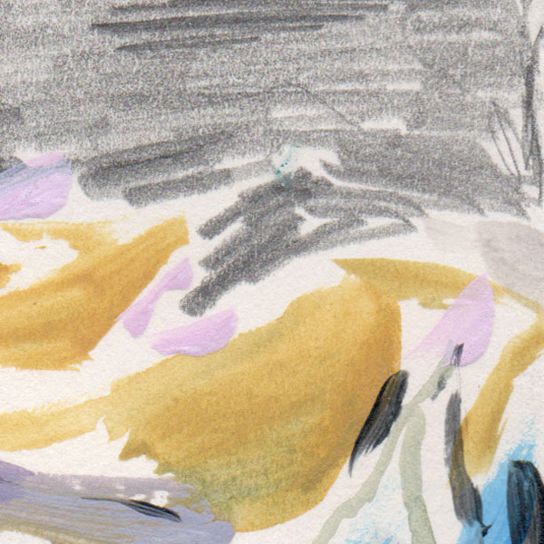 Acrylic and B Pencil on Stonehenge paper (colour: cream), 5″ x 6″, 2022.