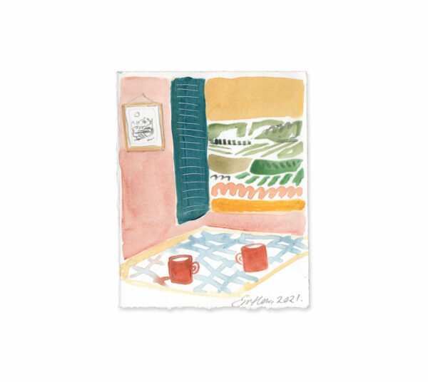 Acrylic and pencil on paper, 4″ x 5″, 2021.
