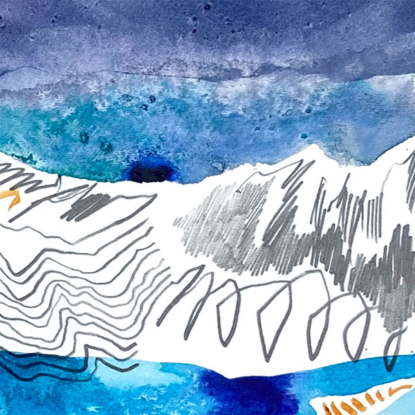 Acrylic and pencil on Fabriano paper, 11″ x 14″, 2021.