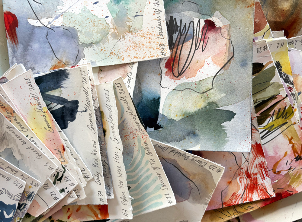 Before starting this body of work, I reached out to my audience, friends, collectors.. anyone who felt compelled to share.. and asked for their words on motherhood. Stories, poems, random words, confessions.. absolutely anything. I often invite others into my creative practice, and some past collections have grown from the stories and images people have sent me (81 Wild, Four Year Wild Fire and Snapshots). The Motherhood Collection continues that tradition.. these 50 artworks come from all of us, not just me.