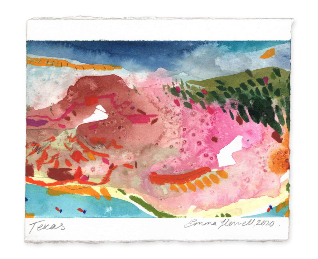 The 81 Wild collection is comprised of 50 original pieces that embody imagination mixed with realism. With help from the descriptions and my mere fascination towards the eerie expanse of the land, creating these pieces was an attempt to mentally travel to each place. The works are visual translations onto paper, shedding a spotlight on the state’s landscape, weather, colours, textures, flora, fauna, sounds and culture.